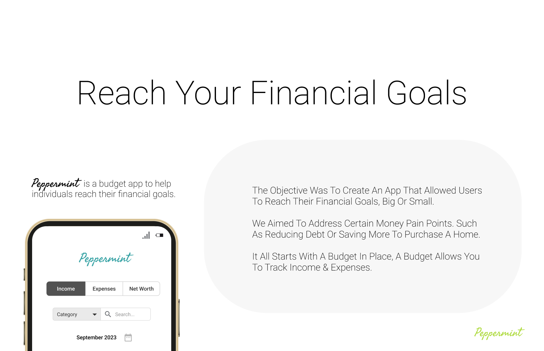 It all begins with a budget. Maybe you want to save more per month. Maybe you want to reduce debt. Or maybe you make sure you are investing enough. Whatever it is, our Peppermint Budget App with AI technology helps you get closer to your money goals. Making a difference in your financial health for you and your family.